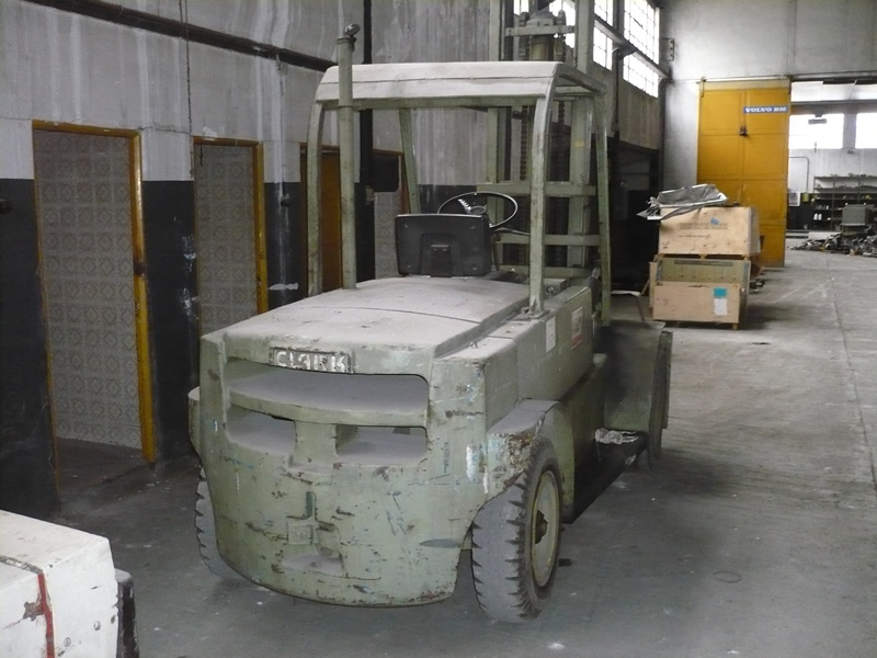 Carretilla elevadora de horquilla frontal. Modelo de la marca Clark con una capacidad de elevación de 5 toneladas.