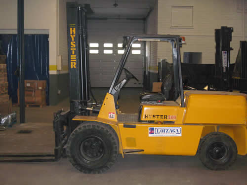 Carretilla elevadora de horquilla frontal. Capacidad de elevación 5 toneladas hasta una altura de 4 metros.