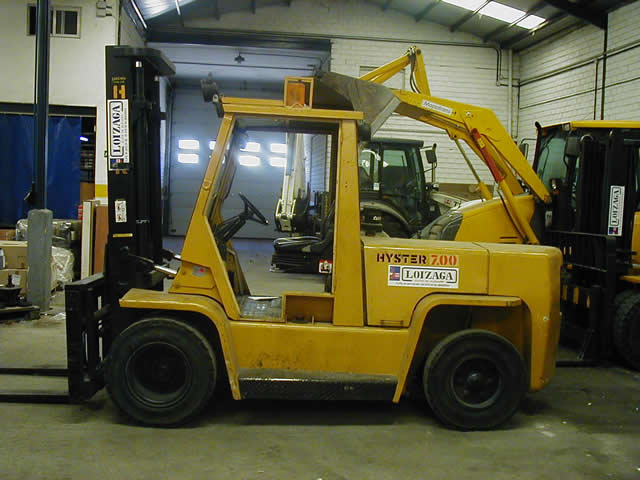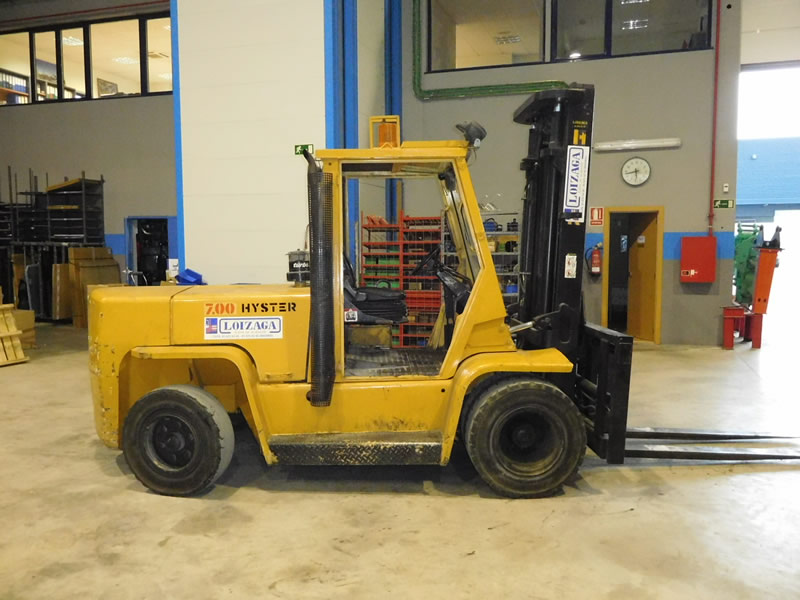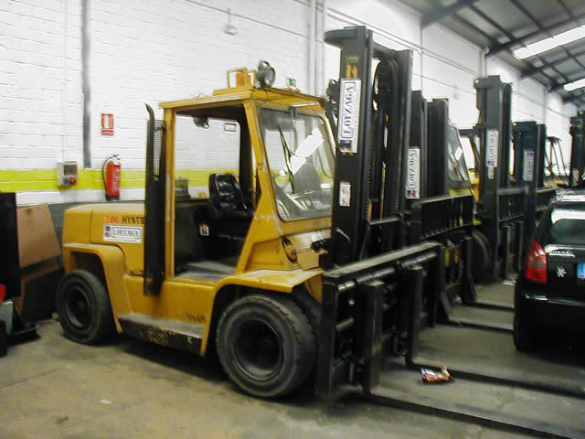 Carretilla elevadora de horquilla frontal. Capacidad de elevación 6 toneladas hasta una altura de 3,4 metros.
