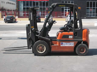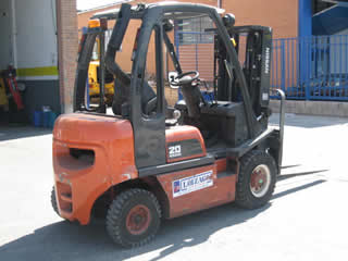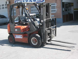 Carretilla elevadora de horquilla frontal. Capacidad de elevación 2 toneladas hasta una altura de 4,3 metros.