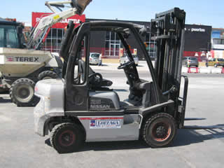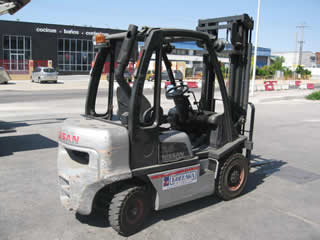Carretilla elevadora de horquilla frontal. Capacidad de elevación 2,5 toneladas hasta una altura de 3,7 metros.